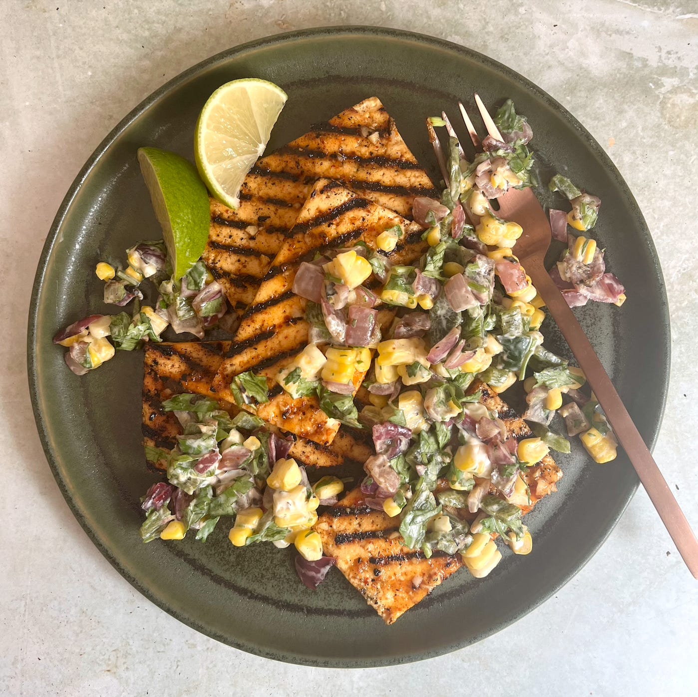 Tajín-Grilled Tofu with Poblano Corn Salsa